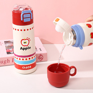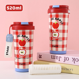 2025年新作 Appleシリーズ 高見え女子向け魔法瓶カップ 316ステンレス 弾む蓋付きストローカップ 直飲みカップ