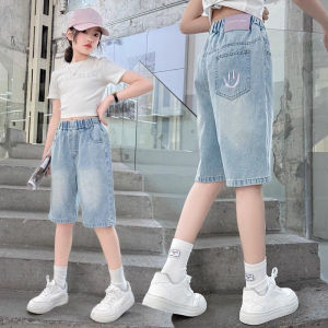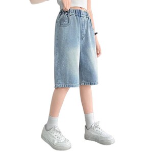 女の子夏パンツデニムショートパンツ2025新作ミディアムパンツ女の子中大子供用おしゃれ薄手スタイル
