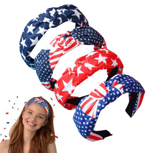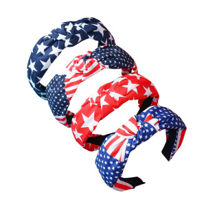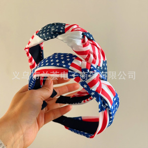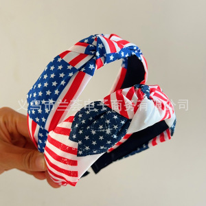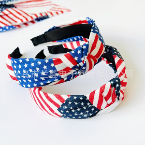 ヨーロッパとアメリカのクロスボーダー独立記念日ヘッドバンドつば広結び目赤と白のストライプ五芒星アメリカ国旗ヘッドバンドヘアアクセサリー