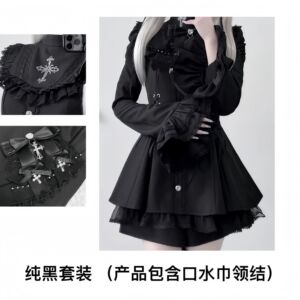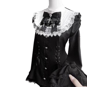 新しい恋人ロリータリボンレース長袖ショートスカートファッショナブルなウエスト痩身ダークスカート