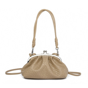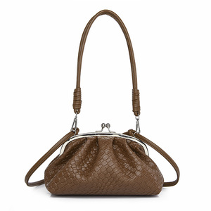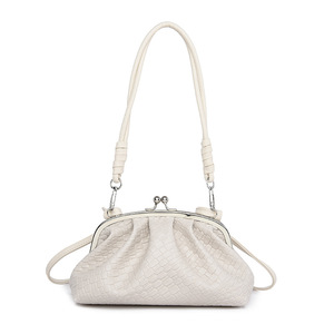 2025 新しいトレンディな織りクラウドバッグ女性のソリッドカラーのプリーツ小さなバッグコントラストカラーファッションワンショルダークロスボディクリップバッグ