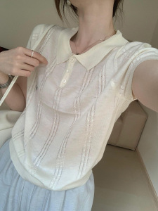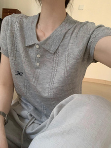 高級グレーツイストポロカラーニット半袖レディース夏刺繍デザインカジュアルボトムシャツTシャツファッショナブルなトップ