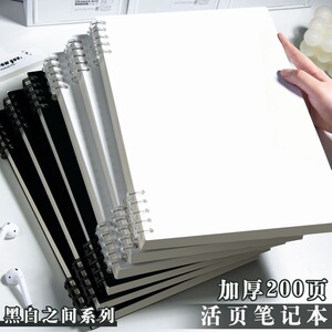 黑白复古b5活页线圈本高颜值大学生专用 a5超厚可拆卸ins风笔记本
