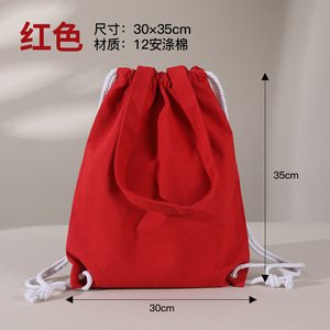 レッド巾着ポケット-12ポリエステル綿-サイズ30*35