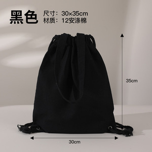 ブラック巾着ポケット-12ポリエステル綿-サイズ30*35