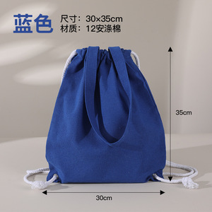 ブルー巾着ポケット-12ポリエステル綿-サイズ30*35