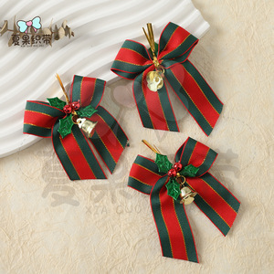 圣诞节铃铛蝴蝶结装饰品圣诞送送礼挂件包装红绿丝带圣诞树配件
