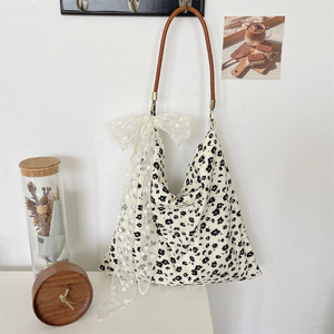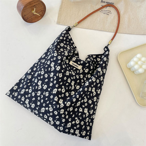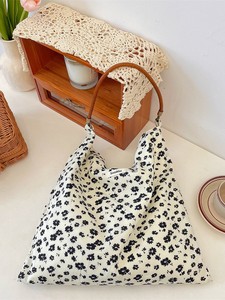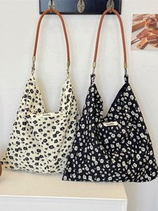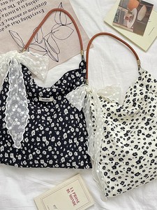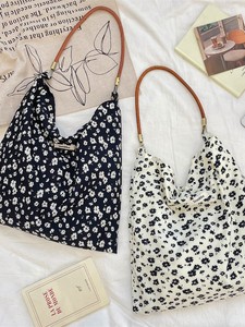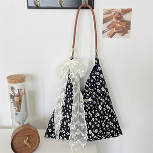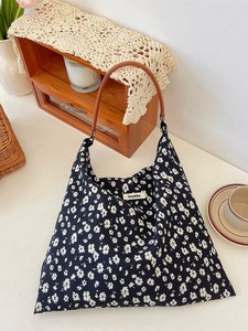 5642 韓国ニッチレトロ花柄コントラストカラー文学キャンバスバッグ甘くて多用途な学生ショルダークロスボディバッグ