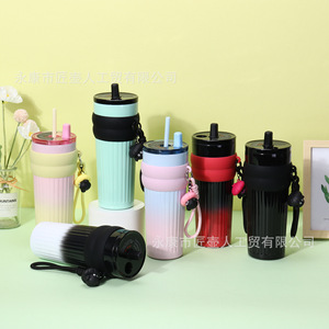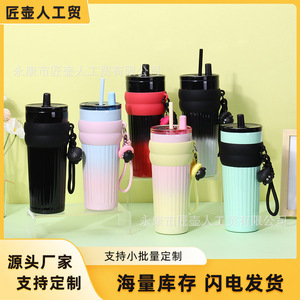 316 ステンレス鋼セラミックライナー断熱カップポータブル手持ちストローカップアウトドアスポーツウォーターカップ保冷アイスカップ