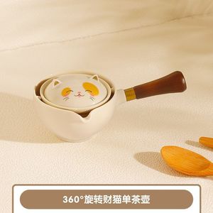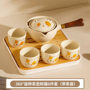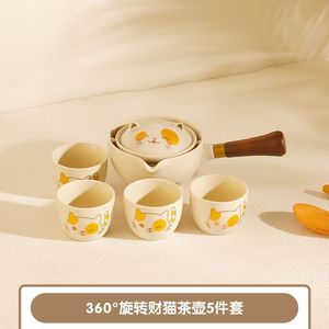 ラッキーキャットレイジーティーセットポータブル旅行収納ティーセットティーカップティーポットホームティーアーティファクトギフト