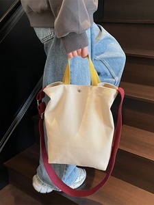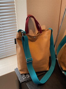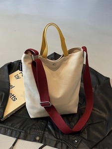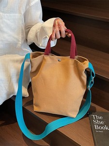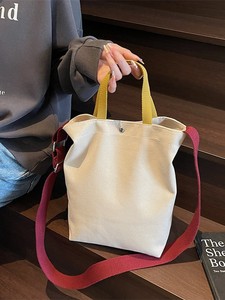 ホリデーギフトポータブルキャンバスバッグ小さなキャンバスバッグコントラストカラーデザインファッショナブルで多用途なショルダーメッセンジャーバッグバケットバッグ