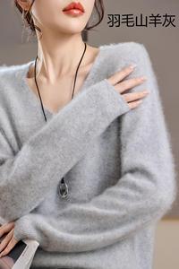 【起毛シリーズ】カシミヤ5% ウール95% ラウンドネック/Vネック シームレス起毛カシミヤセーター レディース セーター 25年新作