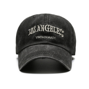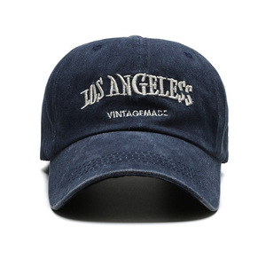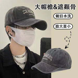女性用ビッグヘッド野球帽、ダメージ加工ウォッシュハット、メンズアメリカンつば広レトロ顔見せ小ぶりトレンド刺繍ひさしキャップ