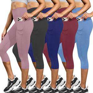 クロスボーダーヨーロッパとアメリカの女性用ポケットクロップドヨガパンツ春夏ハイウエストおなか引き締めタイトアウターウェアクロップドレギンス