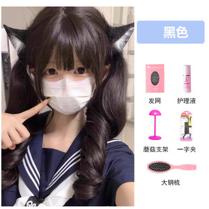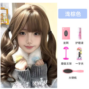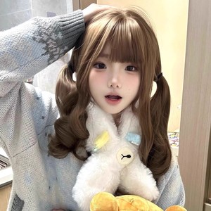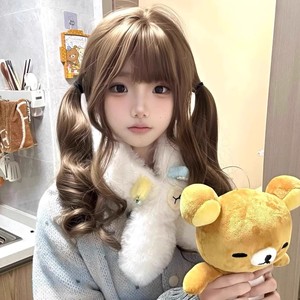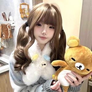 フルウィッグ 女性用 ロリータ風 ロングカールヘア ソフトガール ダブルポニーテール 65cm 大きなウェーブ カール 日常使い 耐熱ファイバー