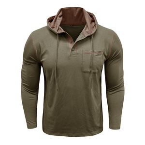 2025 外国貿易クロスボーダーメンズ長袖 Tシャツアマゾンヨーロッパとアメリカのメンズフード付きヘンリーシャツ秋と冬のアウトドアトップ