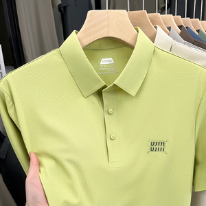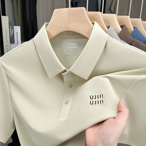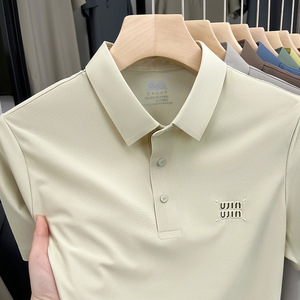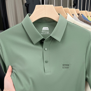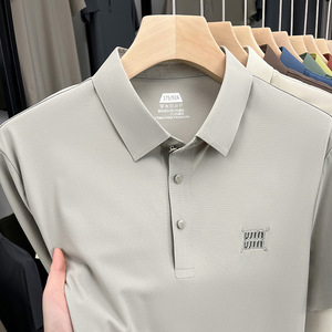 夏季新款冰丝短袖男t恤无痕锦纶降温凉感商务高级感男士t恤代发