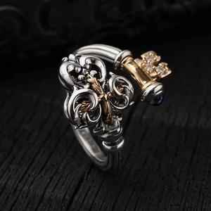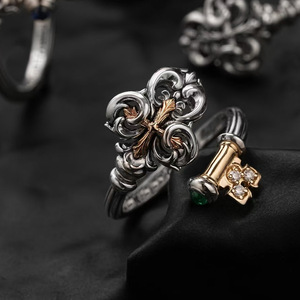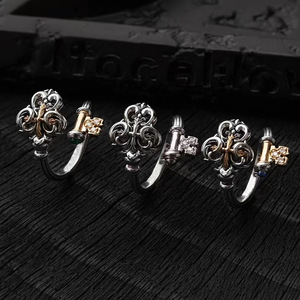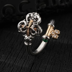 クロスボーダーレトロ花びら立体キー象嵌ダイヤモンド人差し指リング中空クロス2色オープンリング中古リング