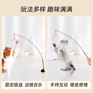 ペットの猫のおもちゃ、吸盤、猫じゃらし、猫の退屈解消ツール、怠け者向け自動羽根、ベル付き、噛みつき防止