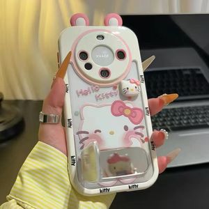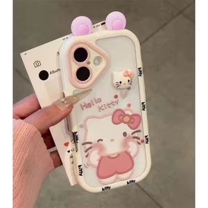 KT 猫耳ホルダー Apple 16Pro クリーム 携帯電話ケース 透明 iPhone15Promax 携帯電話ケース オールインクルーシブ