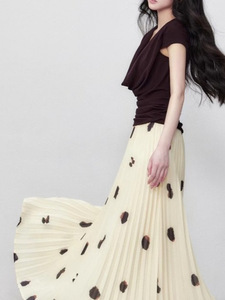 Yuzhi 気質スイングカラー半袖 Tシャツ夏の新しい弾性スリムプリーツウエスト痩身トップ女性用