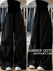 黒の速乾性オーバーオール女性の夏薄い 2025 新しいルーズカジュアルニッチスタイルドレープパラシュートワイドレッグパンツ