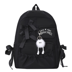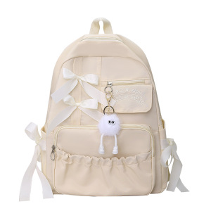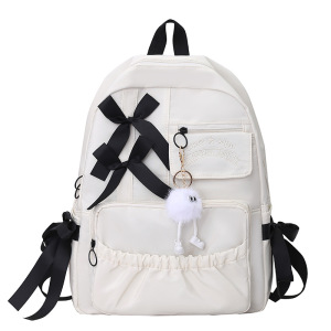 书包女大学生大容量学院风双肩包可爱撞色背包简约褶皱学生包包
