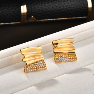 超光沢のあるプリーツスクエアジルコニウムイヤリング、絶妙でユニークなニッチイヤリング、ヨーロッパとアメリカの軽い豪華でクールなスタイルのイヤリング