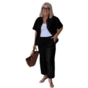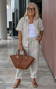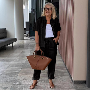 2025 ヨーロッパとアメリカの春夏クロスボーダー独立系カジュアルスーツ綿とリネンラペルスーツジャケットルーズパンツスーツ
