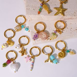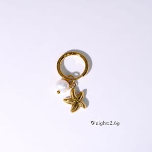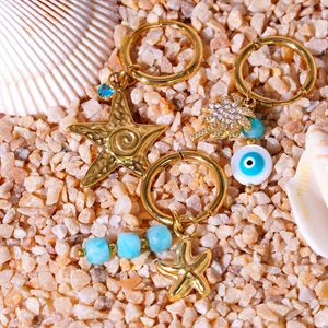オリジナルデザインシングルオーシャンエレメントステンレス天然石ピアスクロスボーダーリゾートスタイルヒトデ