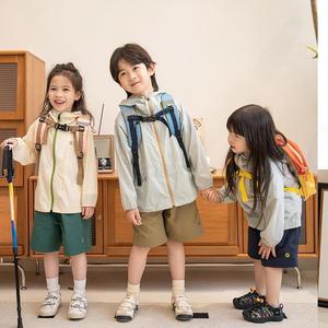 子供の屋外旅行春と夏の対照的な色の日焼け止めジャケット男の子と女の子のための人気の通気性のある薄いカジュアルジャケット