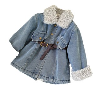 女の子のベルベットの暖かいソフトデニムジャケット 2025 新しい韓国スタイル子供のミッドレングスの秋と冬の厚いトップトレンディ