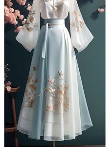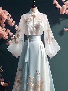 2025 夏の新中国風の宋漢服チャイナドレス改良された女性のスーツスカート漢要素スカート 2 点セット