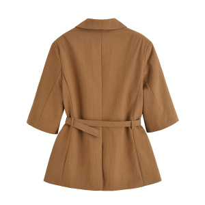 PB&ZA レディース 2025 夏新作 5 分袖ベルト付きスーツジャケット + リネンカジュアルミッドウエストショーツ