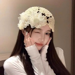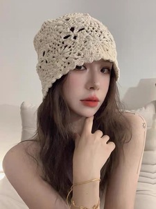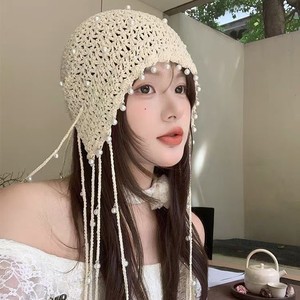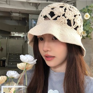 ボヘミアンフラワータッセル編み込みつば帽子レトロ中空エスニックスタイル手編みプルオーバー帽子