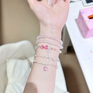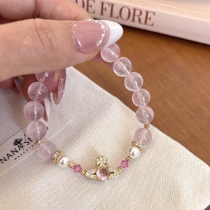 2025 新しい 925 シルバーオーストリア Huazi クリスタル kt キーマルチサークルスタッキングナチュラルピンククリスタルブレスレットライト高級