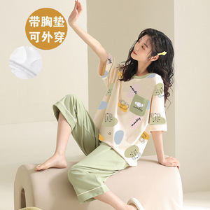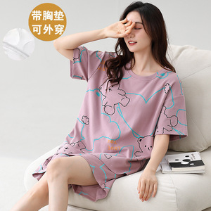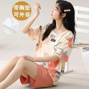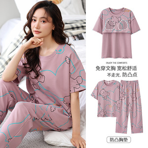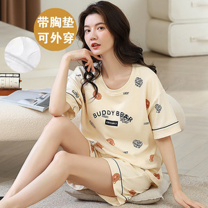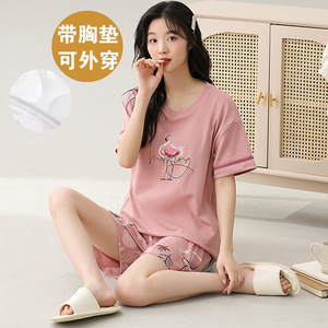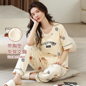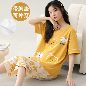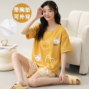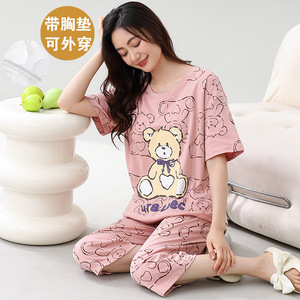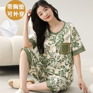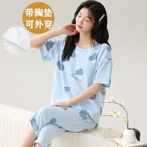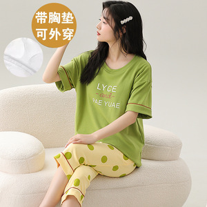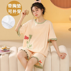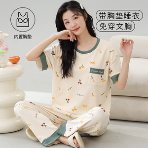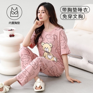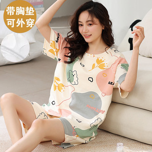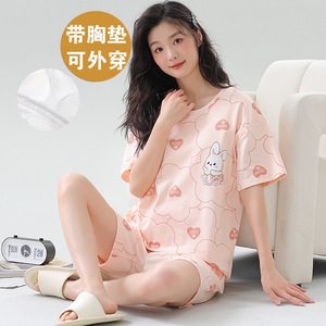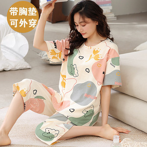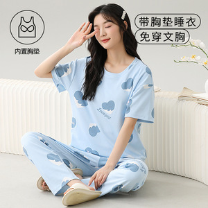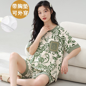 女性用胸パッド付きパジャマ、新しいゆったりとしたウェアラブル半袖夏カジュアル中高年ホームウェアスーツ
