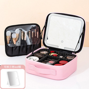 LEDライトとミラー付き化粧品バッグ、多機能2025新しいポータブル大容量プロフェッショナルメイクアップバッグイン
