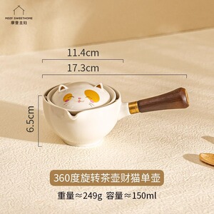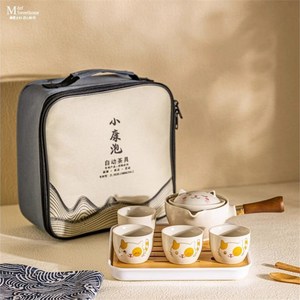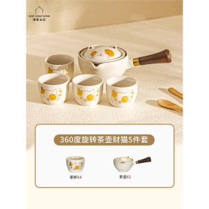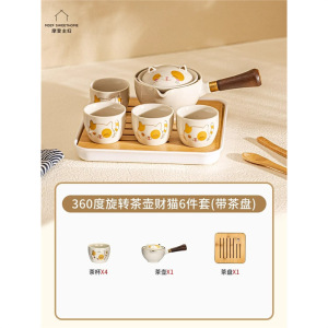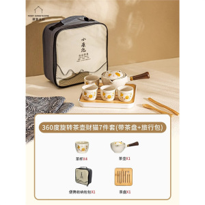 360度旋转茶壶财猫7件套【带茶盘+旅行包】
