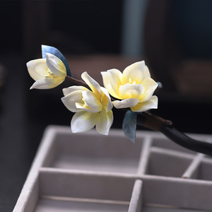[クチナシ] 無形文化遺産ベルベットフラワーヘアアクセサリーヘアピン中国風漢服手作りベルベットフラワーチャイナドレスアクセサリー新しい中国風多用途