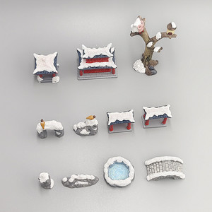 满19元包邮微景观雪景国风建筑江南小楼亭院桥门假山水池造景摆件