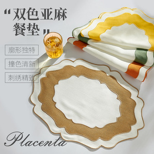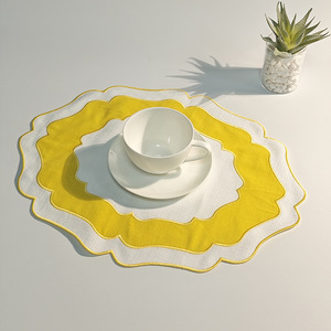 新しい 2 色のリネンプレースマット家庭用ハイエンドクリエイティブ断熱マットレストランレストラン小さな新鮮なテーブルマット卸売