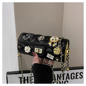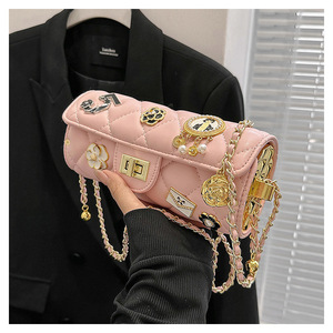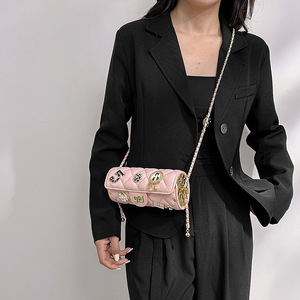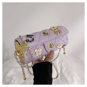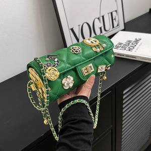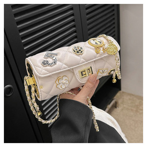 ヘビーデューティフラワー小香風シリンダーバッグ女性のための 2025 新しい大容量ファッション菱形チェーンショルダークロスボディバッグ