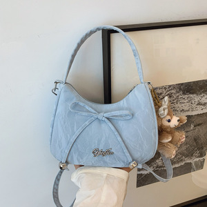 法式ins风清新腋下包单肩包大容量斜挎包蝴蝶结少女甜美通勤手拎