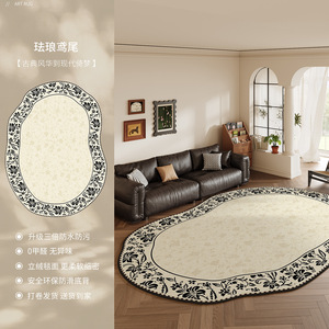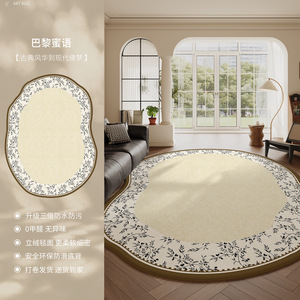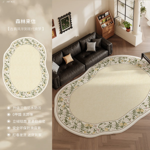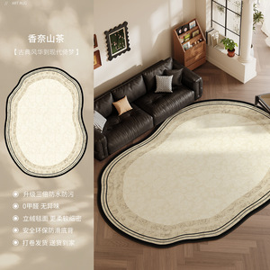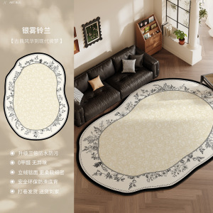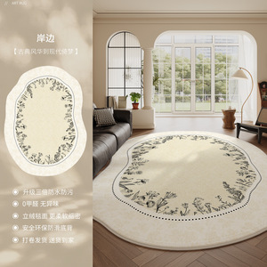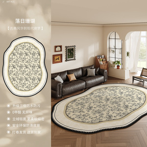 リビングルーム用のフランスの特殊な形のカーペット、汚れにくくお手入れが簡単、2025年の新しい花柄の洗濯不要の高級ソファベッドルームフロアマット
