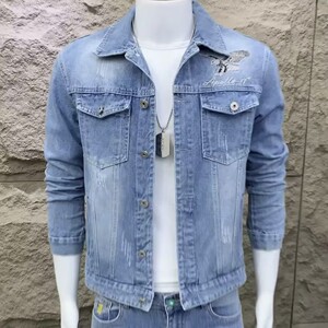 2025外套牛仔刺绣夹克韩版休闲潮流男士修身男装牛仔衣帅气外套男