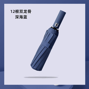 【24本骨ダブルキール】強化耐風サニーアンブレラ-ネイビーブルー