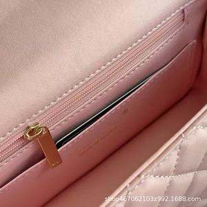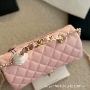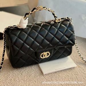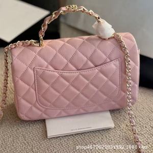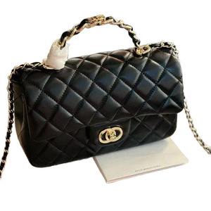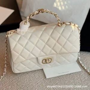 23k 本革 ライトゴールド ハンドル ミニ CF スモール スクエア バッグ シングルショルダー 斜め掛け ダイヤモンド チェーン クラムシェル バッグ