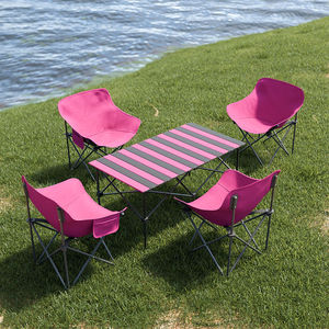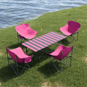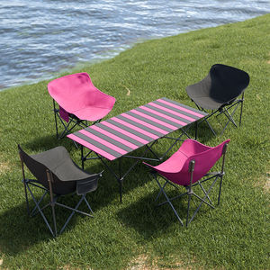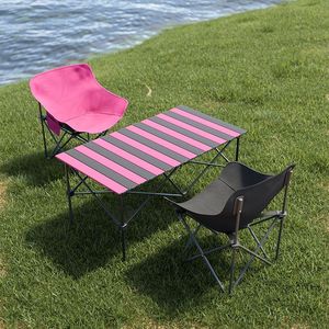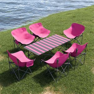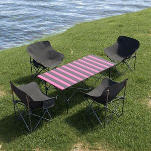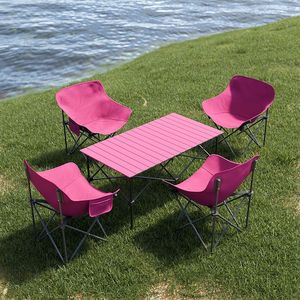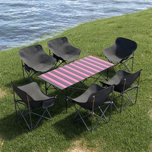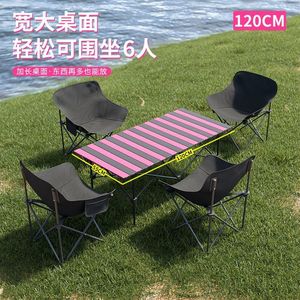 屋外折りたたみテーブルと椅子セット 2025 アップグレードされた厚みのあるポータブルキャンプストール機器エッグロールテーブルムーンチェア
