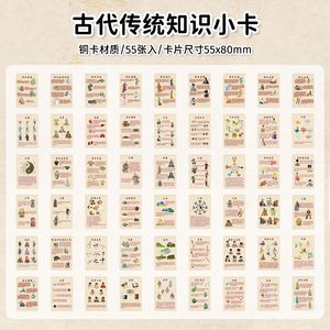 古代の伝統的な知識、55 枚の興味深い中国風のテキストカード、人気の科学文化知識周辺機器、高精細ロモカード